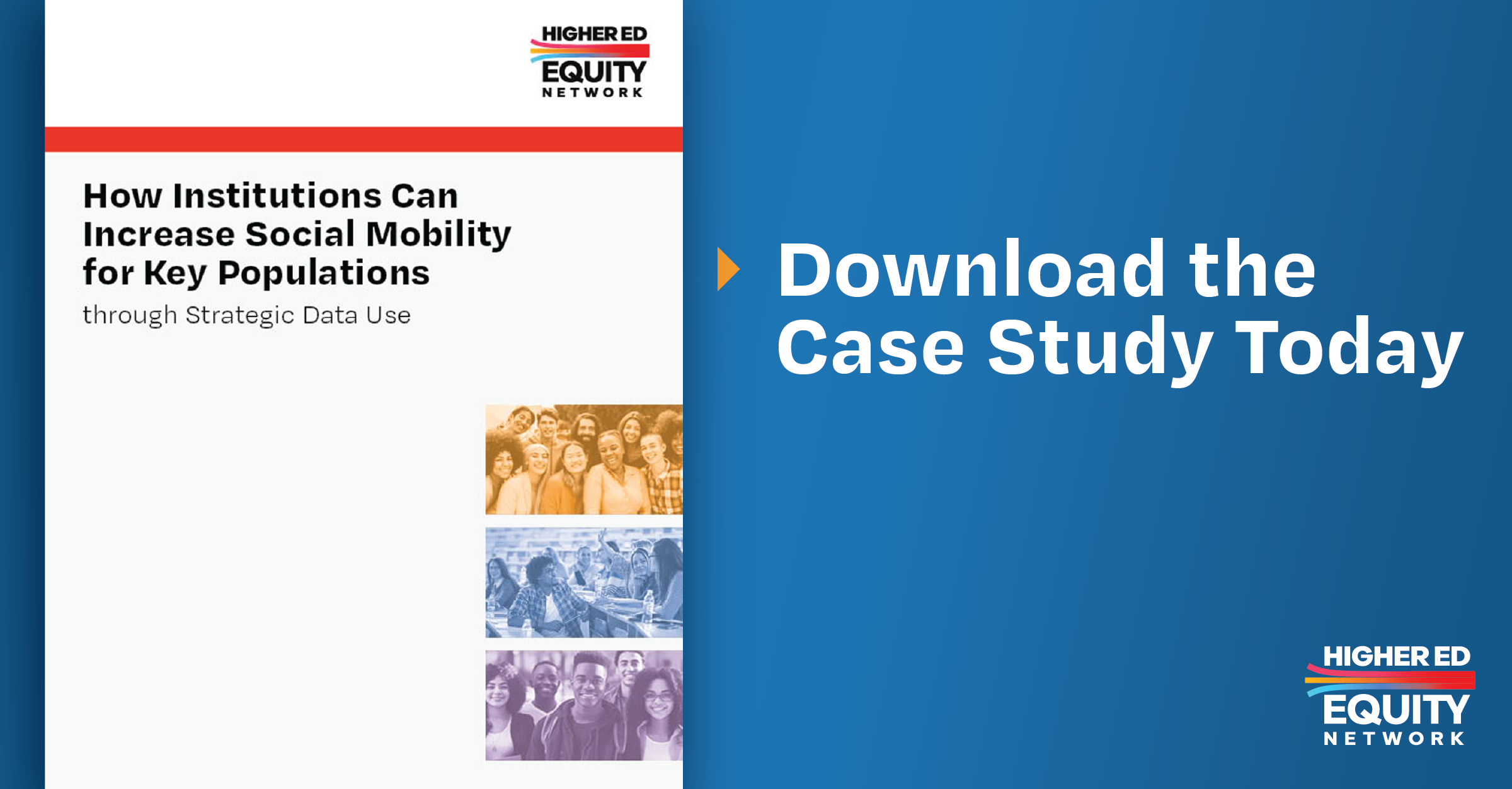 How Institutions Can Increase Social Mobility for Key Populations through Strategic Data Use is a case study commissioned by the Higher Ed Equity Network and produced by HCM Strategists. This case study aims to bring awareness to the barriers that impede institutions’ ability to establish strong data use practices and culture while highlighting bright spots of high-impact data practices at various institution types. Equally as important, it elevates clear roles for key stakeholders to support institutions in tackling the imperative of closing economic disparities and better serving learners. High-quality disaggregated data is one of the most critical tools institutions have to help illuminate barriers, create opportunities, drive decision making and inform targeted strategies.