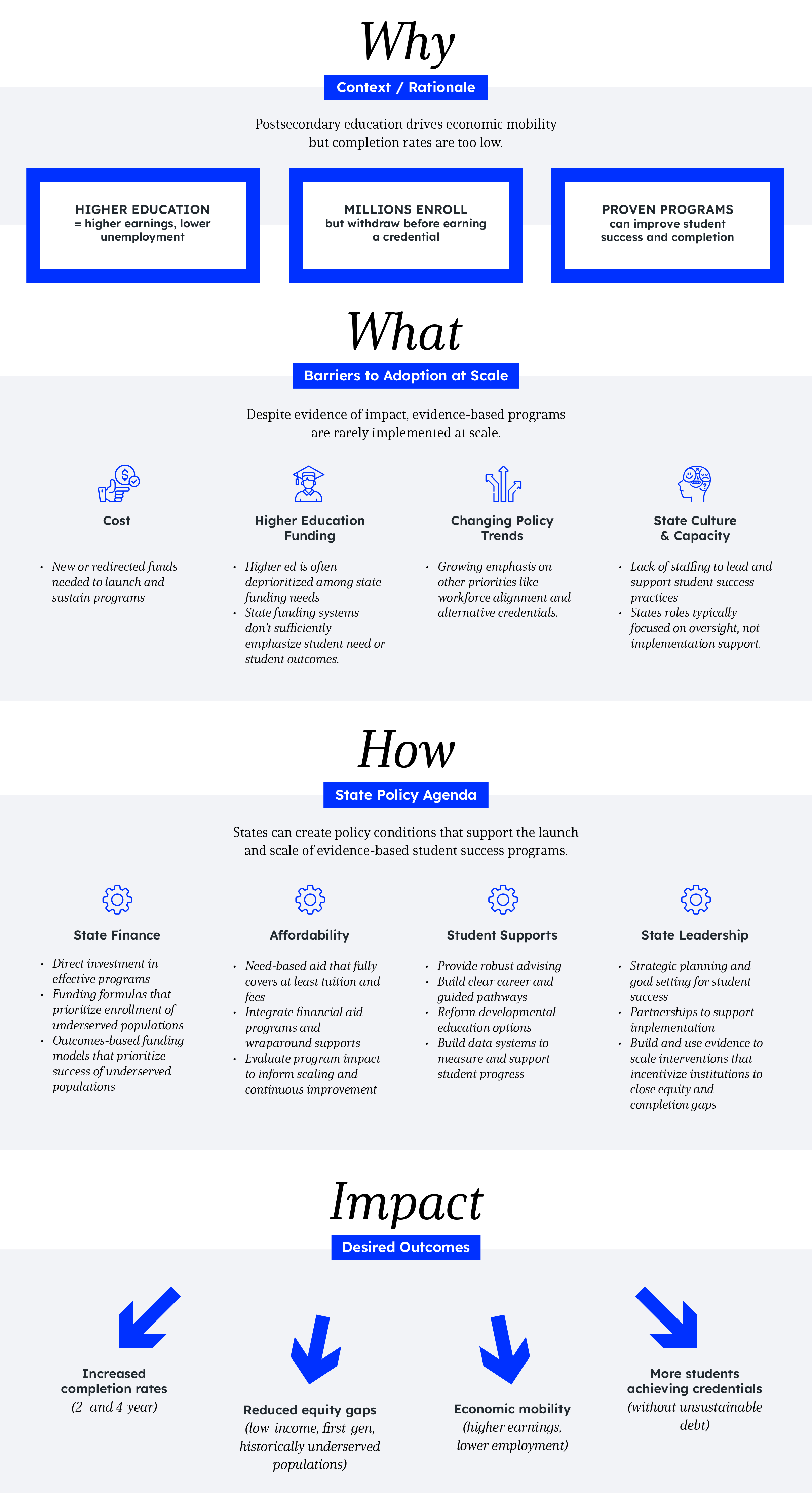 Together, these briefs aim to equip state leaders with actionable insights to advance evidence-based programs and transform the postsecondary landscape.