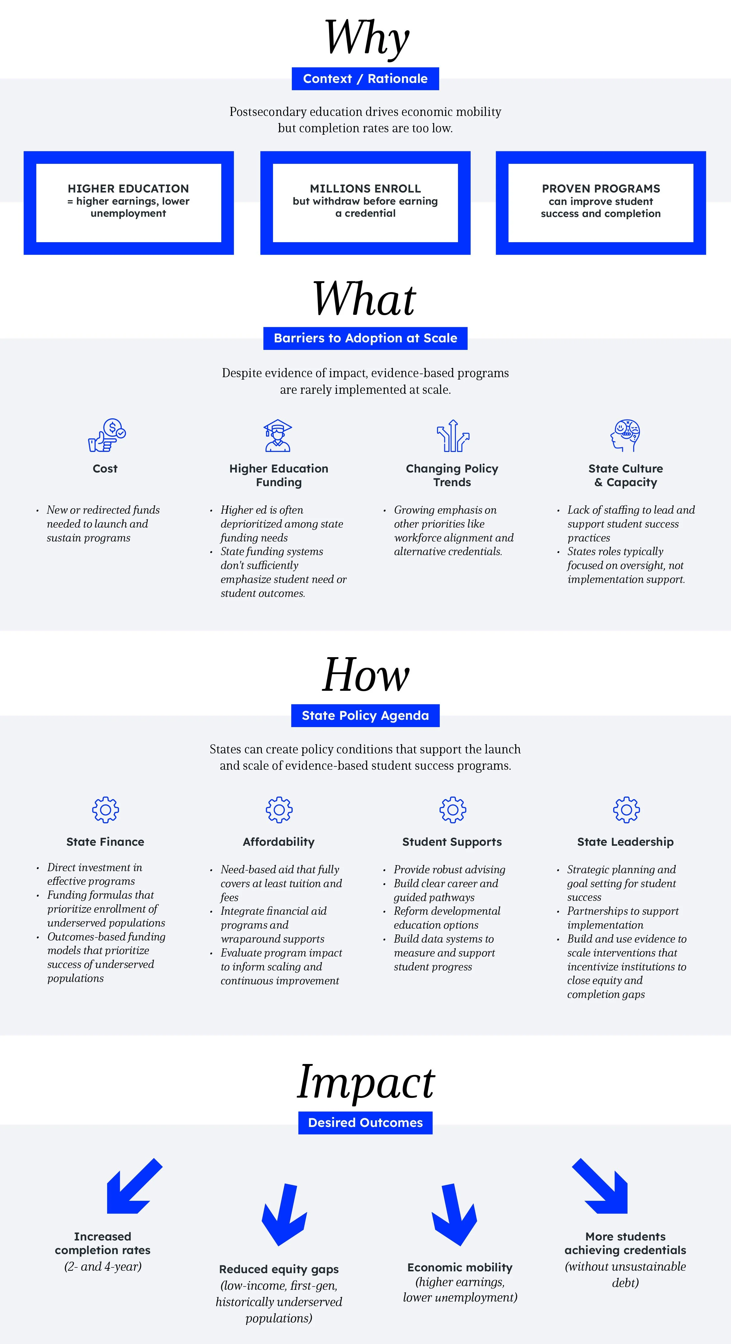 Together, these briefs aim to equip state leaders with actionable insights to advance evidence-based programs and transform the postsecondary landscape.